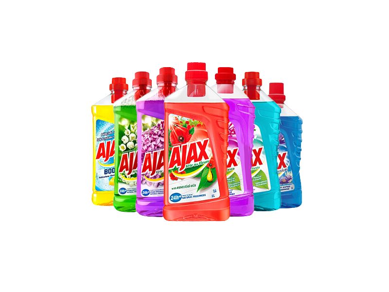 Ajax za čišćenje podova je visokokvalitetno sredstvo namenjeno za efikasno uklanjanje prljavštine, mrlja i bakterija sa svih vrsta podnih površina. Zahvaljujući svojoj specijalnoj formuli, Ajax pruža izuzetnu čistoću i sjaj, ostavljajući osvežavajući miris koji traje.