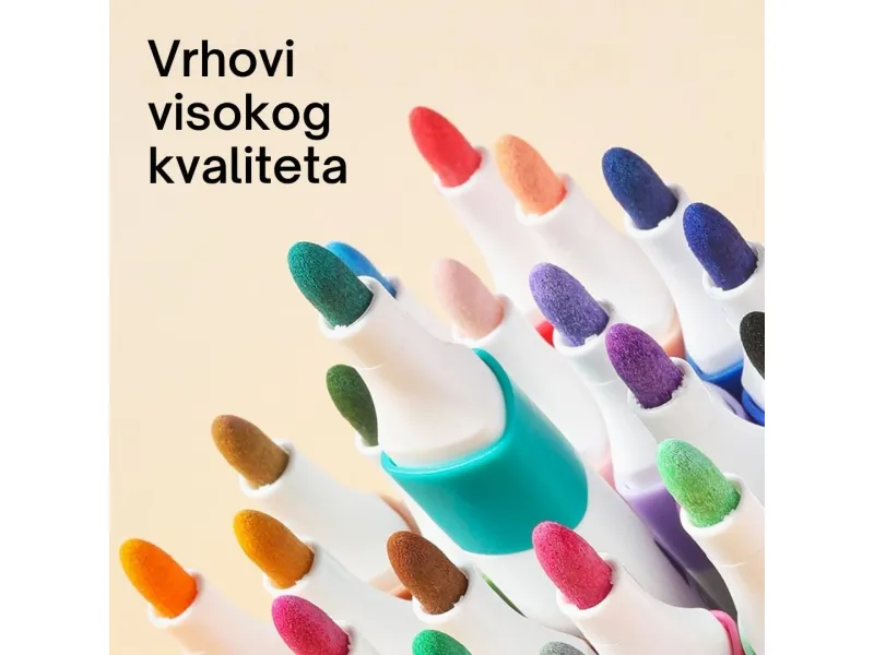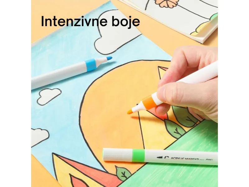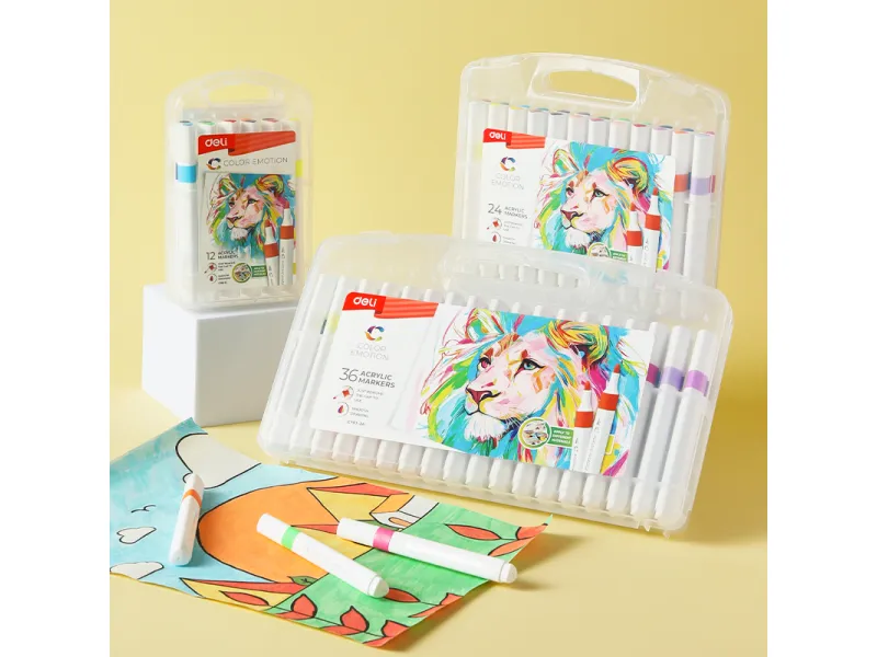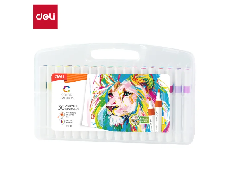 DELI Set akrilnih markera Color Emotion (36 boja) namenjen je za precizno i kreativno izražavanje na različitim površinama, uključujući papir, karton, platno, drvo, metal, staklo i plastiku. Markeri koriste akrilnu boju na bazi vode koja se brzo suši, ne razliva se i ne sadrži neprijatan miris, što ih čine pogodnim za svakodnevnu upotrebu kod dece, učenika, umetnika i hobista. Zahvaljujući visokoj pigmentaciji i kvalitetnom pisnom vrhu, omogućavaju ravnomerno nanošenje boje uz jasne, postojane linije. Donose dozu svežine i jasnoće u svaku ilustraciju ili projekat, dok boja ostaje trajna i otporna na bledenje.