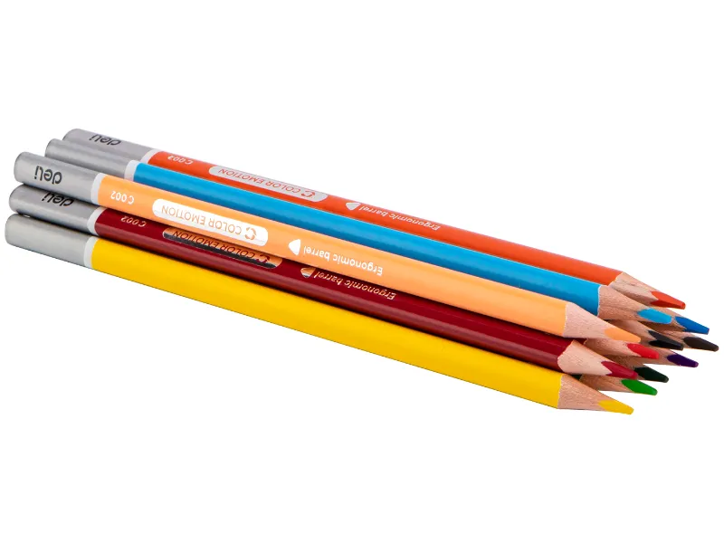 Drvene bojice izrađene od visoko kvalitetnog drveta i pigmentisanog srca. Nova tehnologija proizvodnje pruža veću otpornost same bojice na pritisak i lakše oštrenje. Pakovanje dvanaest bojica.