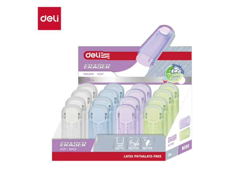 Praktična gumica sa mehanizmom uvlačenja, u atraktivnim pastelnim bojama.