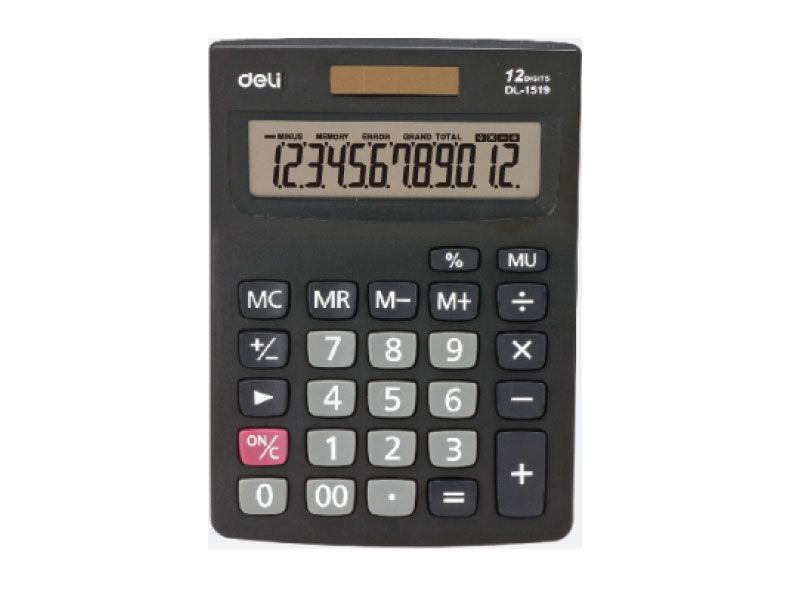 Stoni kalkulator dimenzija 146 x 103 x 32mm, napravljen od abs plastike. Mogućnost upisa 12 cifara. Sadrži dvojno napajanje ( solarno+ baterija), plastične dugmiće, automatsko gašenje, funkciju memorije.
