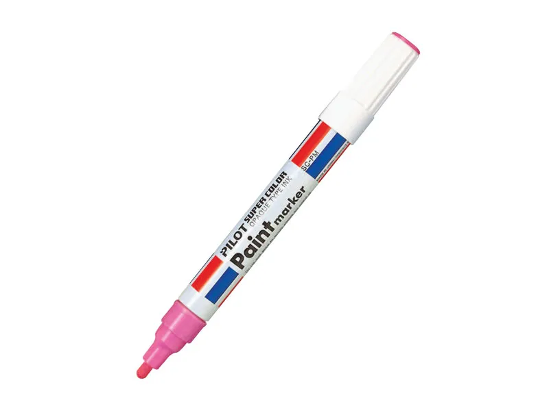 Pilot paint marker intenzivne boje pogodan je za obeležavanje predmeta koji su izloženi različitim uslovima, pogotovo u industriji. Piše po svim površinama: metal, drvo, plastika.. Otporan na toplotu, hladnoću i vodu. Boja ispisa: roze ;Dostupan je sa okruglim vrhom.