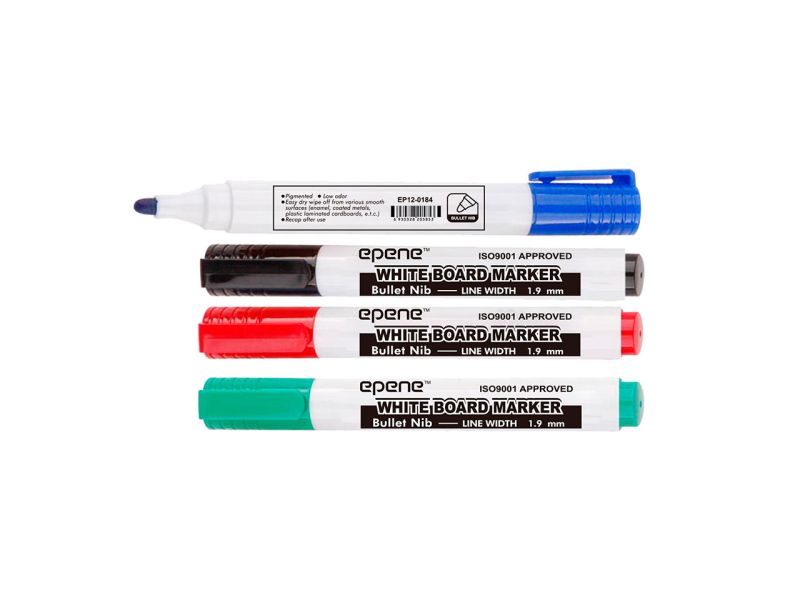Epen WHITEBOARD marker EP12-0184 predstavlja pouzdano rešenje za sve vrste prezentacija, nastavnih aktivnosti i kancelarijskog pisanja po belim tablama. Zahvaljujući oblom vrhu, omogućava precizno ispisivanje linije debljine 1.9 mm, bez razmazivanja i curenja.