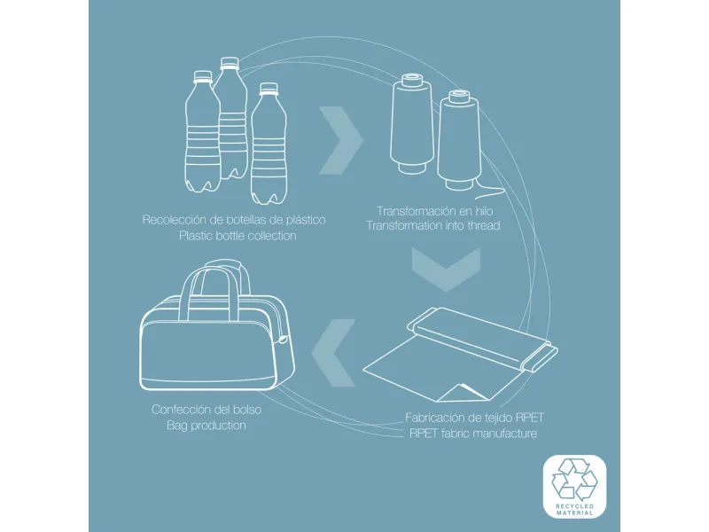 Putna torba iz Week Eco kolekcije, koja se za par sekundi može pretvoriti u ranac. Idealna za kraća putovanja ili za sportske aktivnosti. Torba je izrađena od ekološki prihvatljivog tekstilnog materijala, koji je nastao reciklažom plastičnih boca.