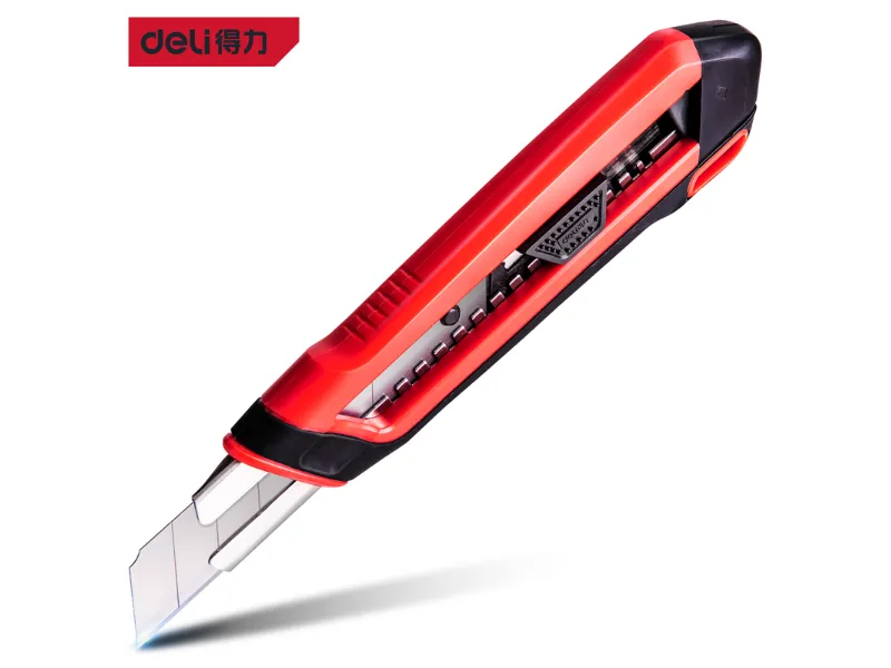 Skalpel za industrijsku upotrebu Kućište izrađeno od visokovalitetnog ABS (termoplastični materijal) Kučište je obloženo sa TPE radi udobnijeg i sigurnijeg hvata Automatsko zaključavanje sečiva za veću sigurnost pri radu
