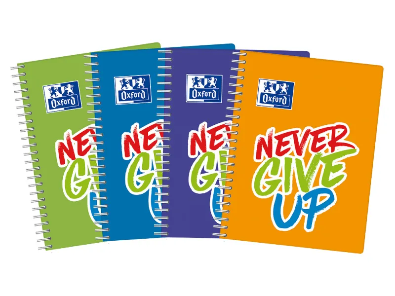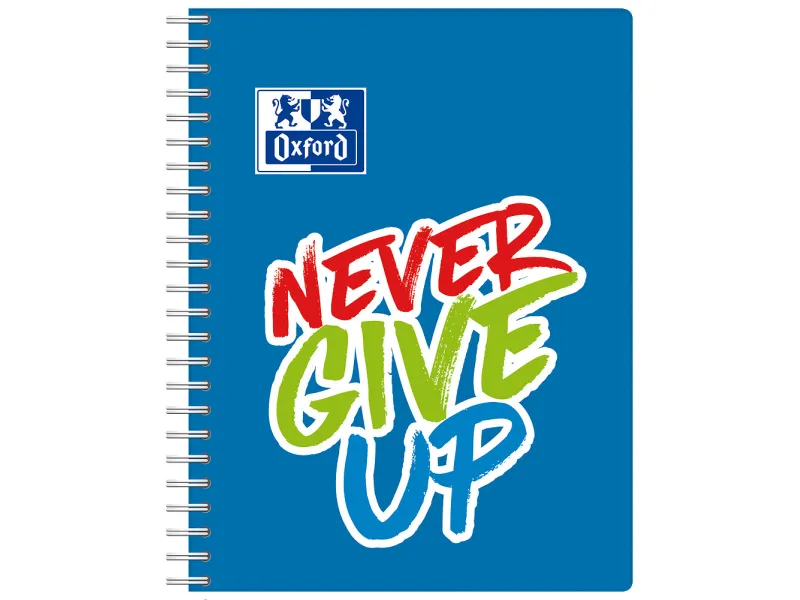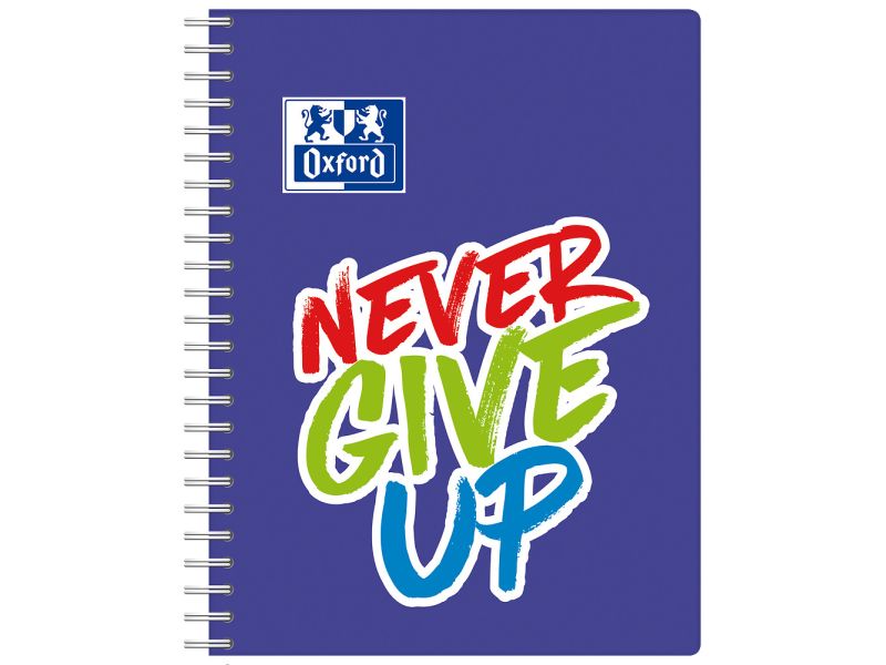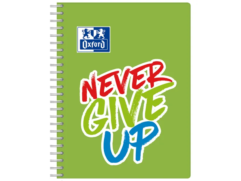Sveska A4+ formata iz NeverGiveUp kolekcije, sadrži 80 listova, 90g/m2, optički papir, s kvadratićima i PP korice s kvalitetnom spiralom.