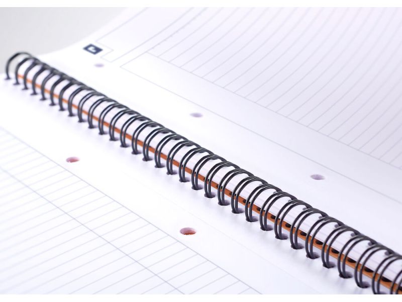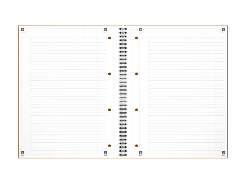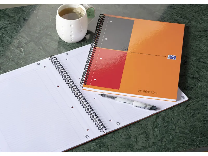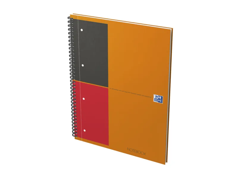 Laminirana, tvrdi povez, izdržljiva - u narandžastoj boji, pruža odličnu zaštitu za beleške i savršena je za vođenje beleški dok stojite. Sadrži informacije o međunarodnim pozivnim brojevima i vremenskim zonama, kao i savete na deset jezika. Stranice imaju dvostruke margine i zaglavlja, za efikasno beleženje napomena i naslova na stranicama. Stranice su bušene i perforirane za lako odlaganje u registrator/klaser. Rukopis se ne vidi sa suprotne strane. Crna dvostruka spirala omoguc´ava da se notebook otvori za 360°.