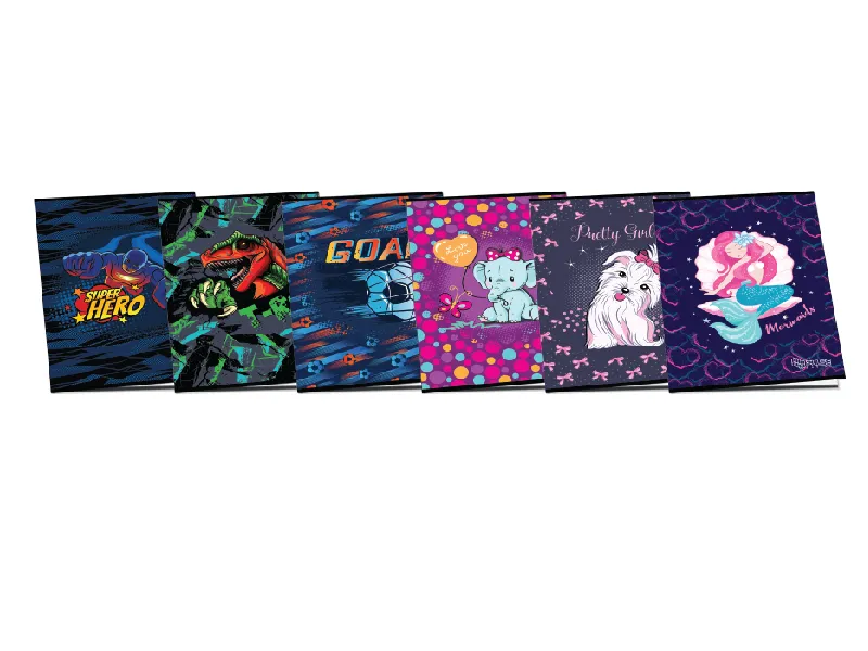 Dizajn sveske prilagođen je Pulse rančevima – dostupan u 32 motiva. Korice su izrađene od kvalitetnog kunzdruk 300g/m² papira obogaćene UV lakom + gliterom, a unutrašnji papir napravljen je od visoko kvalitetne celuloze 80g/m² sa jakom dobrom belinom. Krajevi ivica su zaobljeni tako da se sveska ne oštećuje prilikom korišćenja.