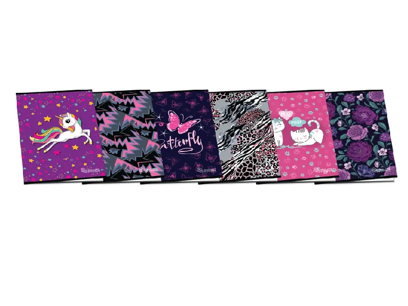 Dizajn sveske prilagođen je Pulse rančevima – dostupan u 32 motiva. Korice su izrađene od kvalitetnog kunzdruk 300g/m² papira obogaćene UV lakom + gliterom, a unutrašnji papir napravljen je od visoko kvalitetne celuloze 80g/m² sa jakom dobrom belinom. Krajevi ivica su zaobljeni tako da se sveska ne oštećuje prilikom korišćenja.