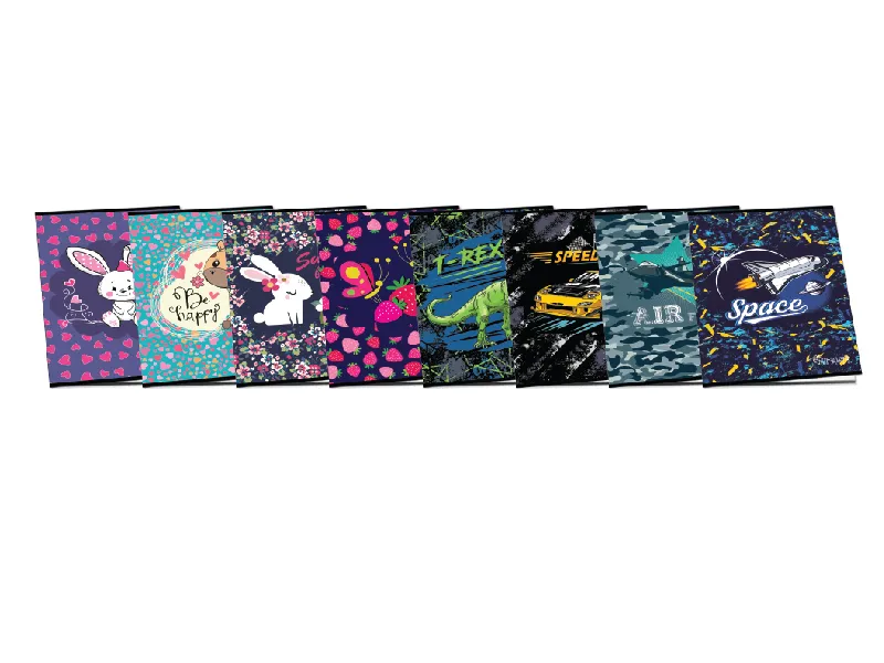 Dizajn sveske prilagođen je Pulse rančevima – dostupan u 32 motiva. Korice su izrađene od kvalitetnog kunzdruk 300g/m² papira obogaćene UV lakom + gliterom, a unutrašnji papir napravljen je od visoko kvalitetne celuloze 80g/m² sa jakom dobrom belinom. Krajevi ivica su zaobljeni tako da se sveska ne oštećuje prilikom korišćenja.