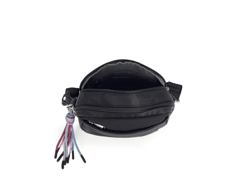 Ženska tašna Aroa je kompaktna, ali sa dovoljno prostora za osnovne stvari, poput telefona, ključeva, novčanika... Izradjena je od kvalitetnog, vodootpornog materijala sa oznakom PVC free. Ima podesiv kaiš, dopunjen sa zanimljivim priveskom, što omogućava nošenje preko ramena ili crossbody, pružajući udobnost i praktičnost. Poseduje tri pregrade: dve centralne i jednu skrivenu zip pregradu. Idealna za žene koje žele spoj funkcionalnosti i estetike u svakodnevnim modnim dodacima