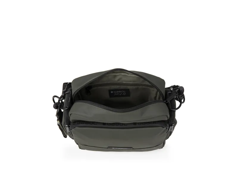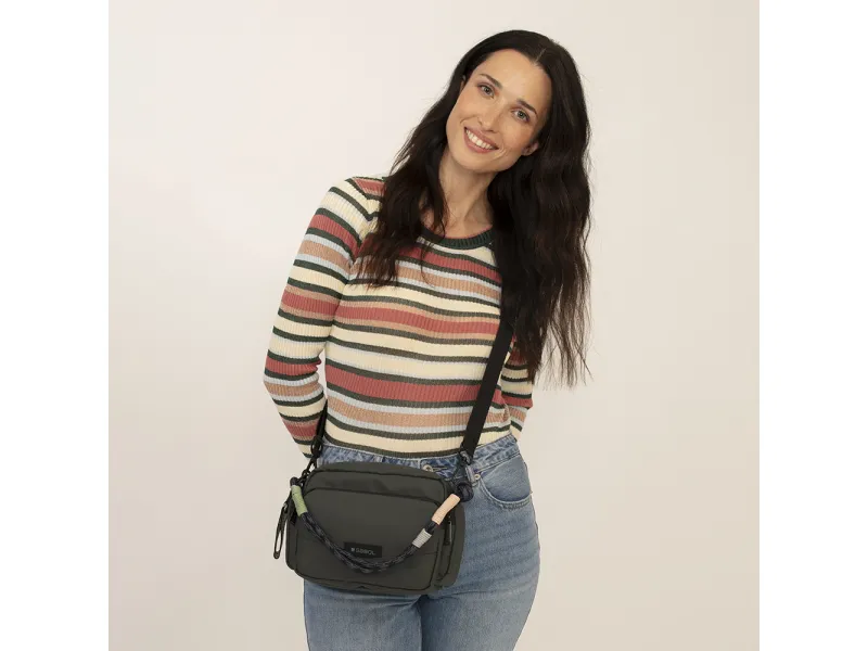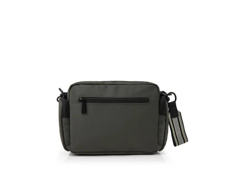 Torbica Mina je manja, ali praktična torba savršena za svakodnevne aktivnosti i večernje izlaske u maslinasto zelenoj boji. Izradjena je od kvalitetnog poliestera, materijala bez PVC primesa. Poseduje jednu glavnu pregradu u kojoj se nalazi dodatni unutrašnje džep sa sitnice. Na prednjoj i zadnjoj strani se nalaze dodatni džepovi koji se zatvaraju zipom. Na bočnim stranama se nalaze dodatni džepovi koji ovaj model čine idealnim za sve ljubiteljke torbi sa velikim brojem džepova. Svaka torba ima kaiš za nošenje preko ramena, ali i dodatnu ručku izradjenu od duplog učkura u sivo-crnoj boji, sa pastelnim detaljima. Uz svaku torbu se dobija i dekorativni, vezeni privezak.