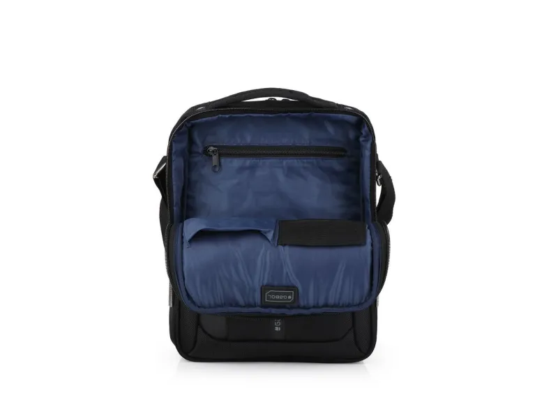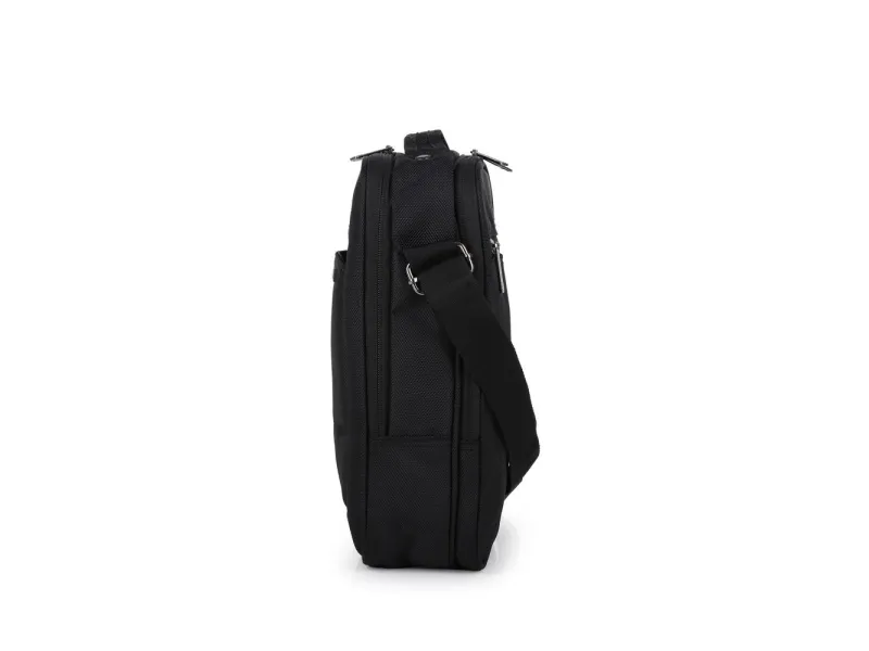 Poslovna torbica tipa "reporterka" sa odeljkom za mini računar ili tablet 10" i ručkom. Materijal: najlon sa detaljima od veštačke kože. Dimenzije: 24x31x9 cm.